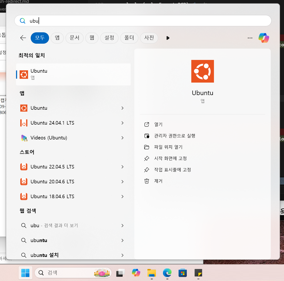 Microsoft Store에서 원하는 Linux 배포판을 검색하여 설치를 진행합니다.